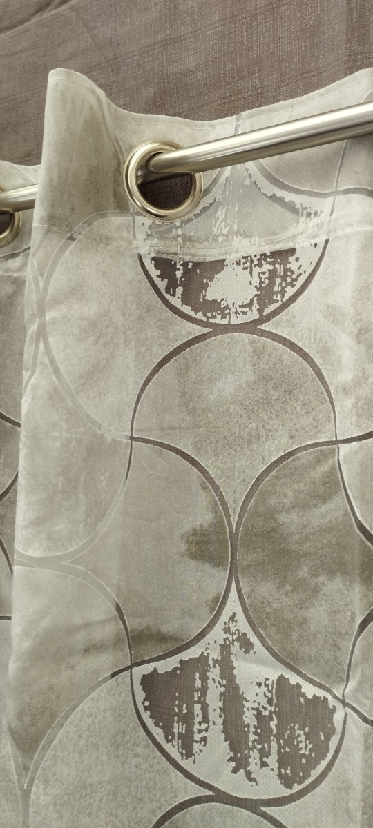 tenda confezionata con anelle tessuto in devore lavorato in grigio, nostra produzione